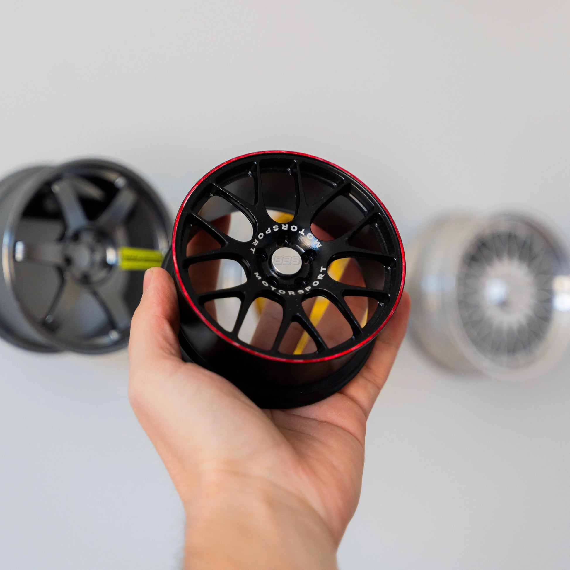 Every model is built to 1:5 scale, with exact proportions and details inspired by the original full-size rims — including removable center caps.